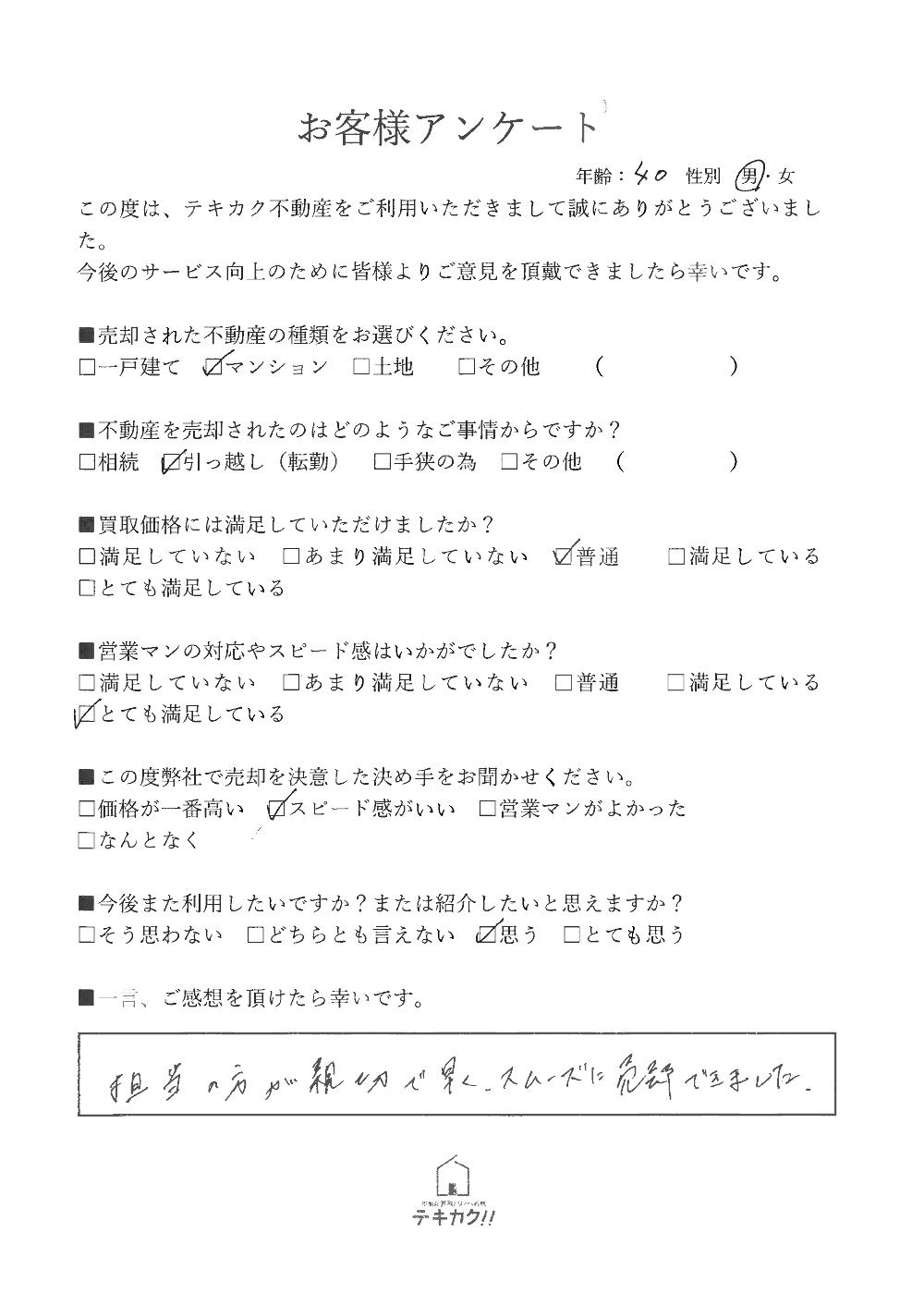 | 屋号 | テキカク不動産 |