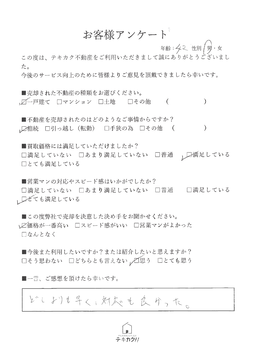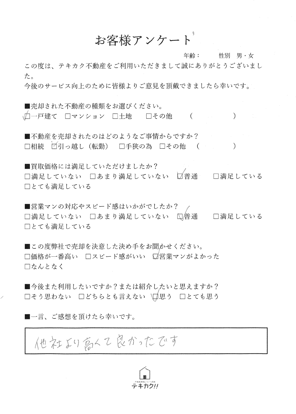 | 屋号 | テキカク不動産 |